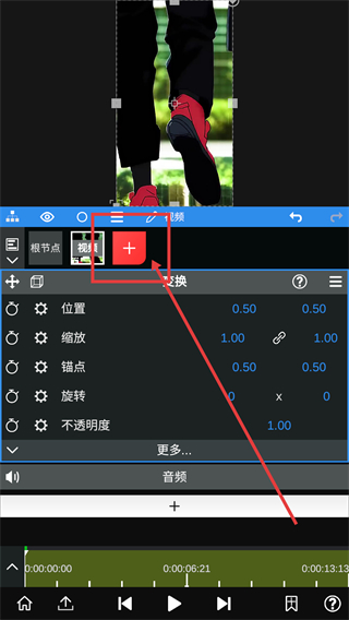 1、在视频编辑界面点击【+】按钮,就能打开新建图层的选项菜单,准备添加新的内容图层啦。