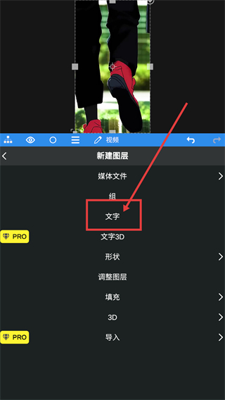 2、打开新建图层菜单后,选择【文字】选项,就能在视频中添加文字图层,开始编辑文字内容哦。