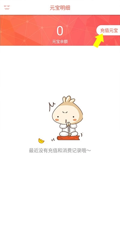 3、进入元宝明细界面后,点击右侧的充值元宝选项