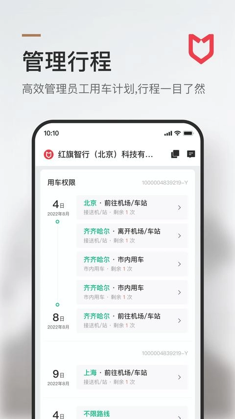 丰富场景服务:支持差旅、会议、商务、通勤等用车场景,满足企业个性化用车需求;