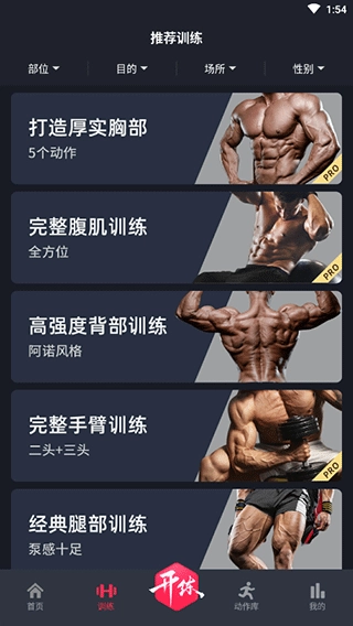 2、在训练模块这里还由手臂、腿部、腹肌等全方位训练教学;