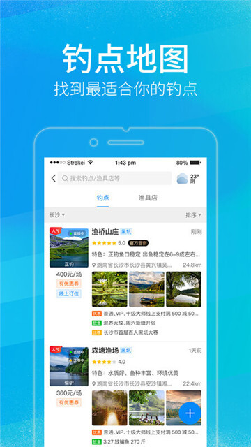 找钓点钓场:为钓友提供钓鱼地图、附近钓点钓场、渔讯、渔具店,钓鱼信息一手掌握;
