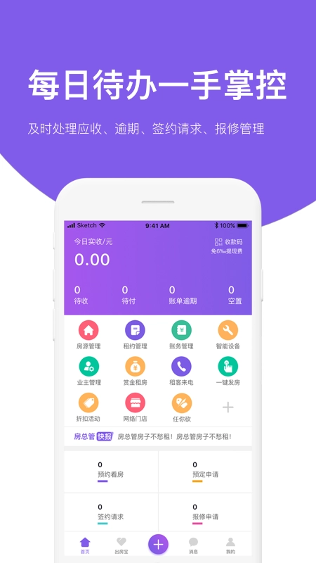 每日待办事项尽在掌握:配备每日待办功能,房东能够清晰直观地查看每日待办事项,进而及时处理,提升工作效率。
