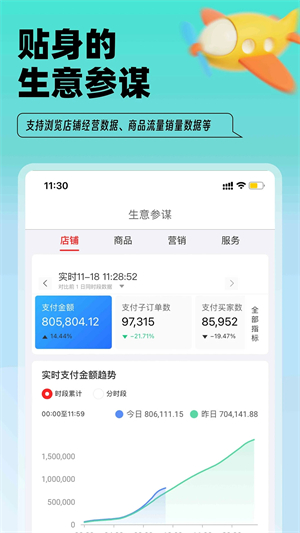 你所关注的各类数据这里都涵盖!能支持查看店铺运营数据、商品的流量与销量数据,还有营销活动及服务相关的数据。