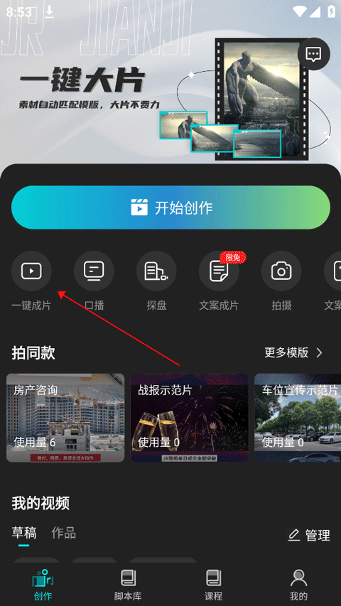 一键成片功能十分高效,通过一键完成影片制作,能让我们更快捷地体验软件,操作起来非常方便。