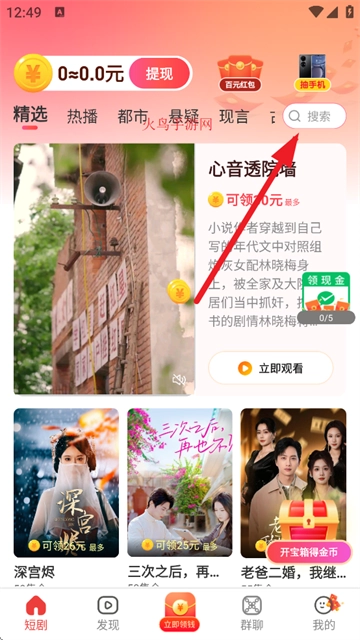 刷短剧就能在线领红包,每观看5个短剧就能获得1个红包。