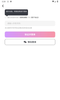 点击注册账号,使用手机号注册,填写手机号获取验证码;