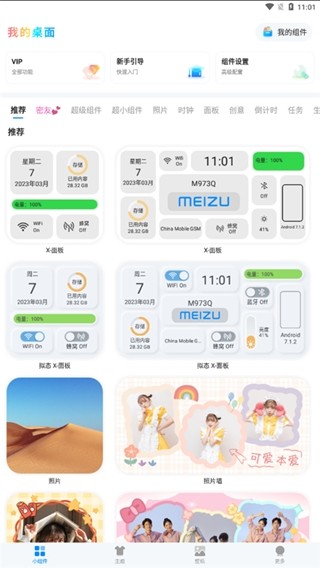 2. 在上方区域,我们还能挑选各类不同的小组件,像照片、时钟、倒计时、任务、便签之类的都包含在内。