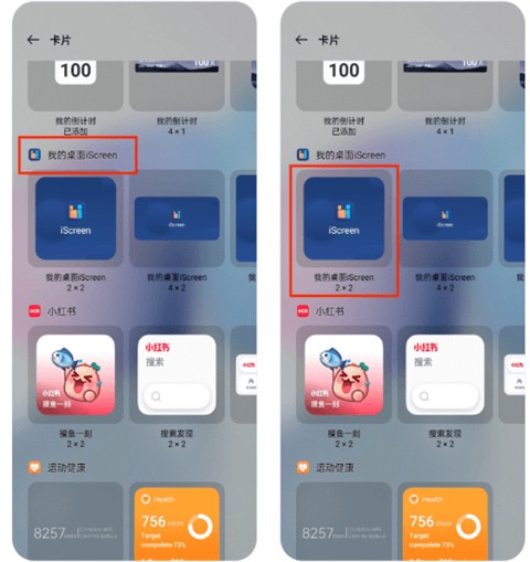 6. 在列表里找到我的桌面iScreen,挑选小组件的尺寸,接着点击或拖动该小组件至桌面。