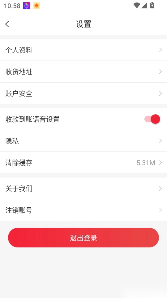 进入菜单界面后,即可对“收款到账语音设置”进行滑动关闭操作。