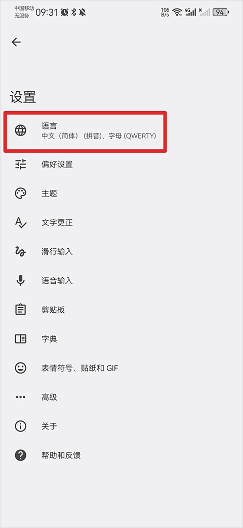 2、在设置界面中选择语言功能