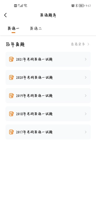 点击进入英语题库,用户可在此查看历年英语真题题库。