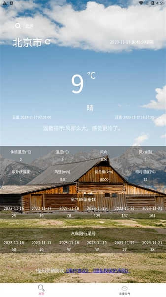 每日为您推送穿衣指南、紫外线强度提醒、洗车指数等实用生活建议,为您的日常生活保驾护航。
