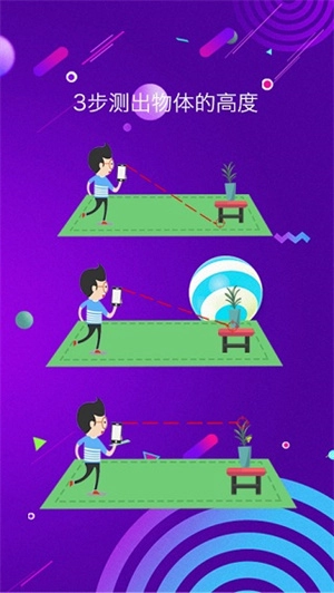 1、距离测量:输入你的身高作为参考,将靶心分别对准物体的底部和顶部拍照,即刻测出物体的高度,方便快捷。你还能测出其他人的身高