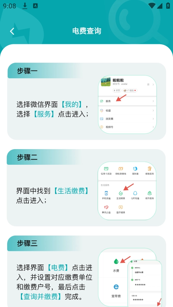 可以看到详细的微信电费缴费查询指南,简单几步即可搞定。