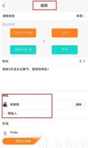 2. 审批效率高:请假、外出、补卡、加班等申请可一键提交,审批提醒会通过微信推送给审批人,有效提升审批效率,省去繁琐沟通环节。