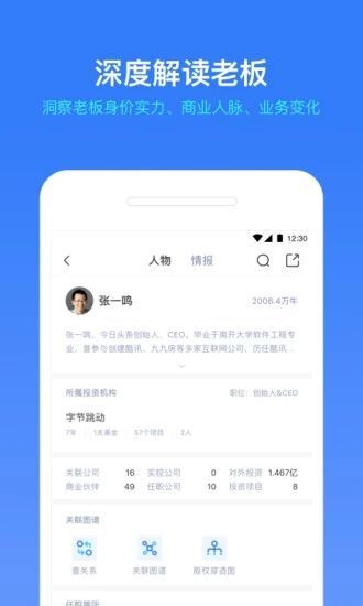 1、该软件具备查询企业以及梳理商业关系的功能,能够帮助你深入了解企业信息。