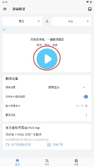 总之,像英语、日语、韩语这类不同语言的软件界面,它都能进行翻译。而且,首页底部能够展开更多设置选项,大家按照自己的使用习惯来调整就好。等完成这些设置后,就可以点击启动浮窗,软件随即会生成一个蓝色的悬浮按钮。