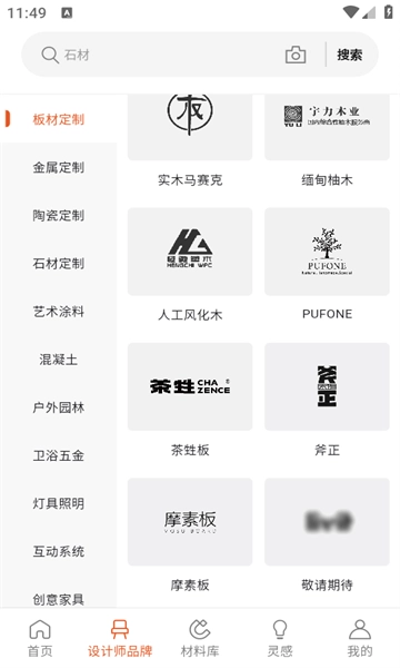 点击设计师品牌,就能找到陶瓷、金属等制品的专业制造厂家。