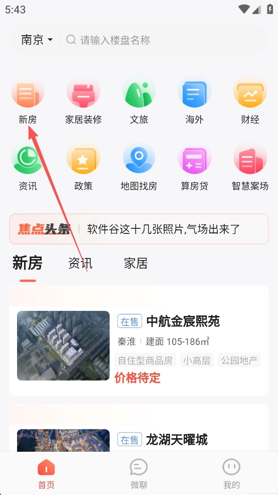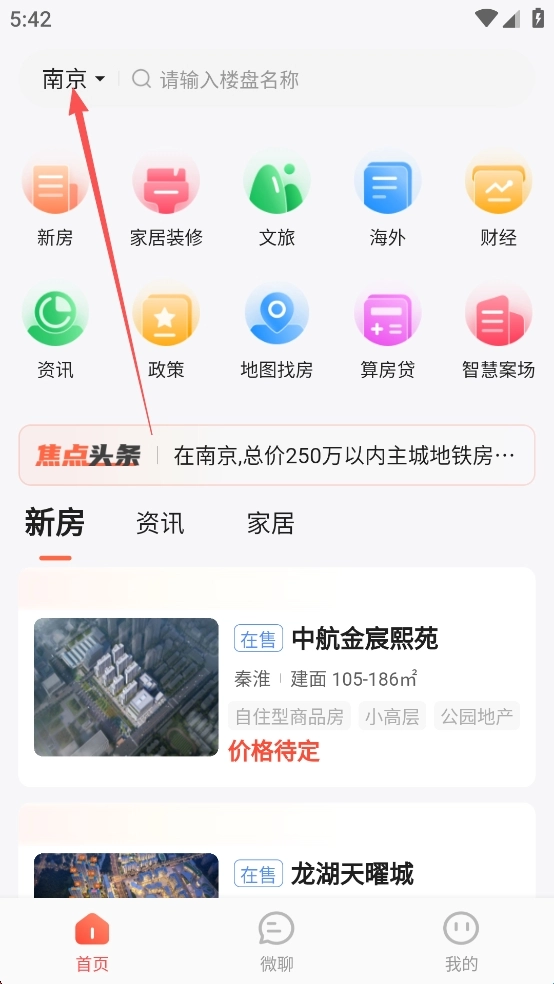 1、打开焦点好房App,设置成你所在的地区