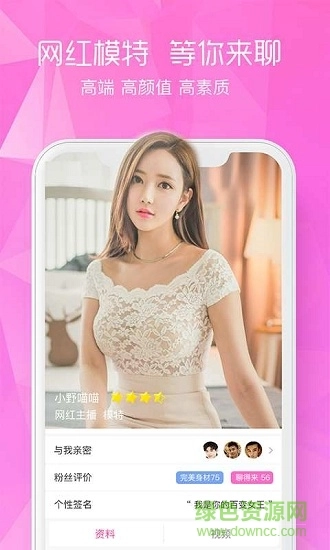 颜聊平台上有不少网红模特,还愁找不到合适的聊天对象吗?想找人聊天的话,就来颜聊吧。