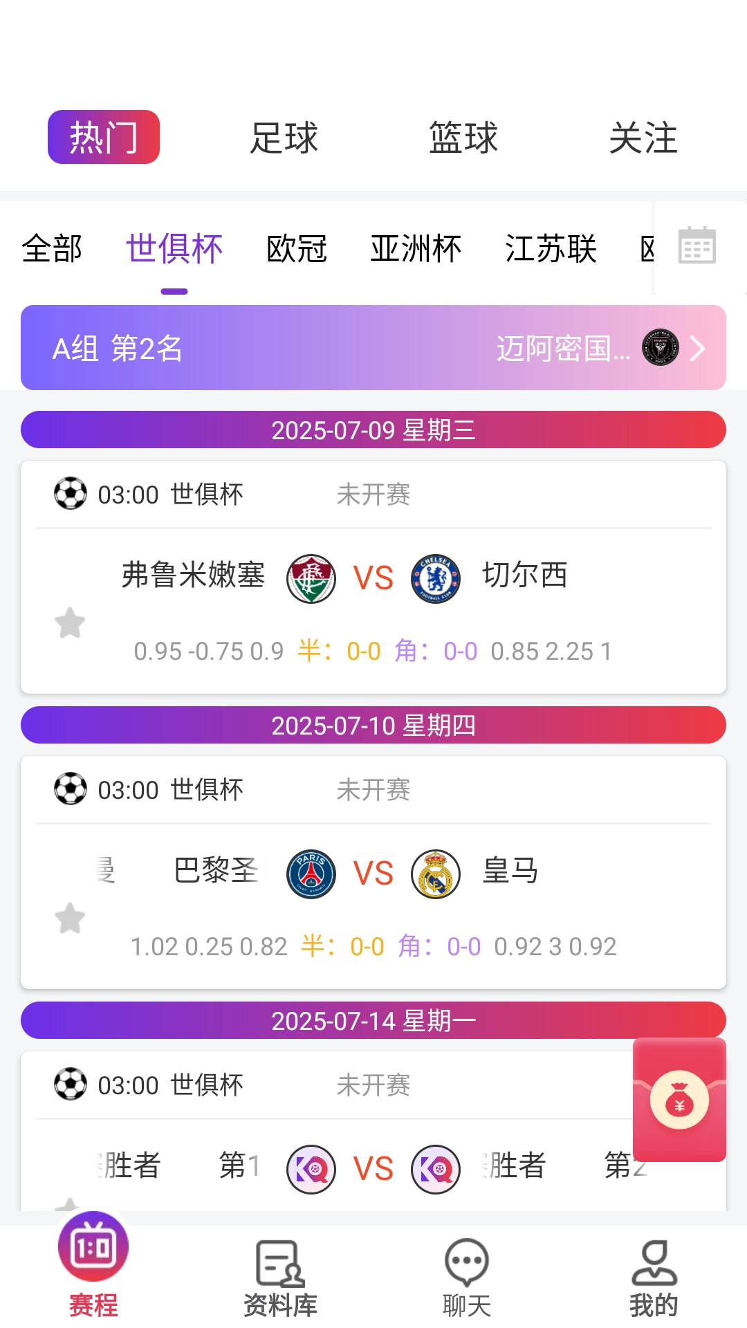 进入【赛程】界面,选择感兴趣的体育赛事版块。