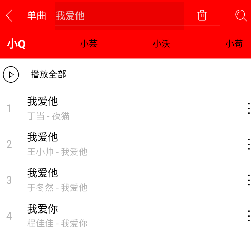 3、在搜索结果里选中你想听的曲目,点击它就能开始播放了。