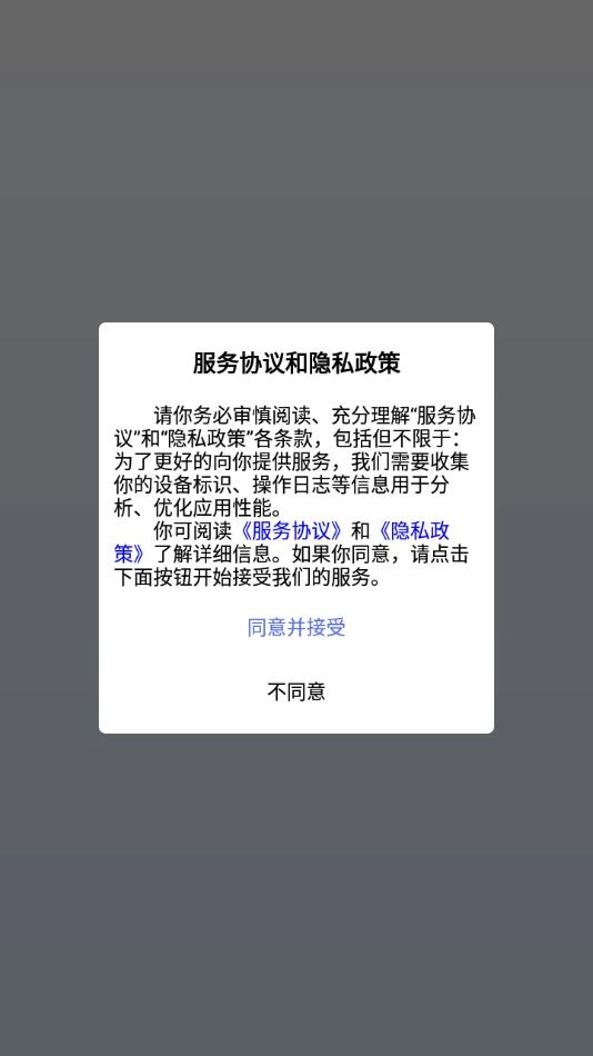 安装软件后打开,点击同意服务协议和隐私政策。
