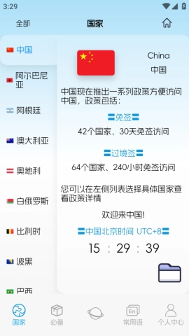 这款软件会持续为你推送中国最新的免签政策,助力你掌握顺利入境中国的相关事宜。如果你持有普通护照,只需留意最长15天、144小时或72小时的入境规定即可。