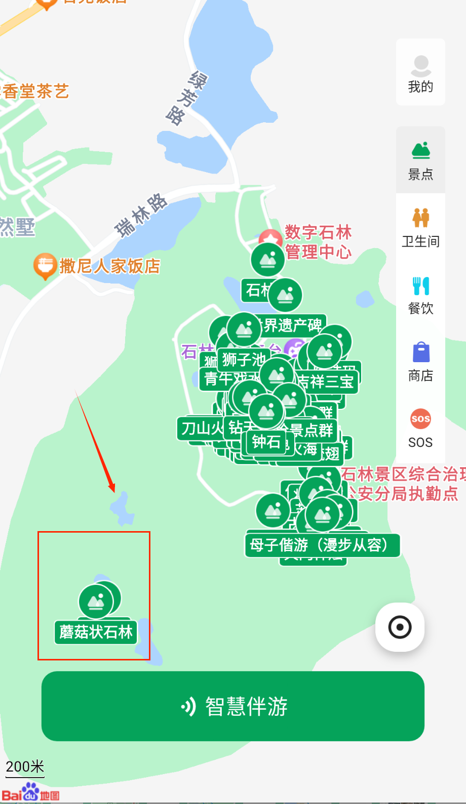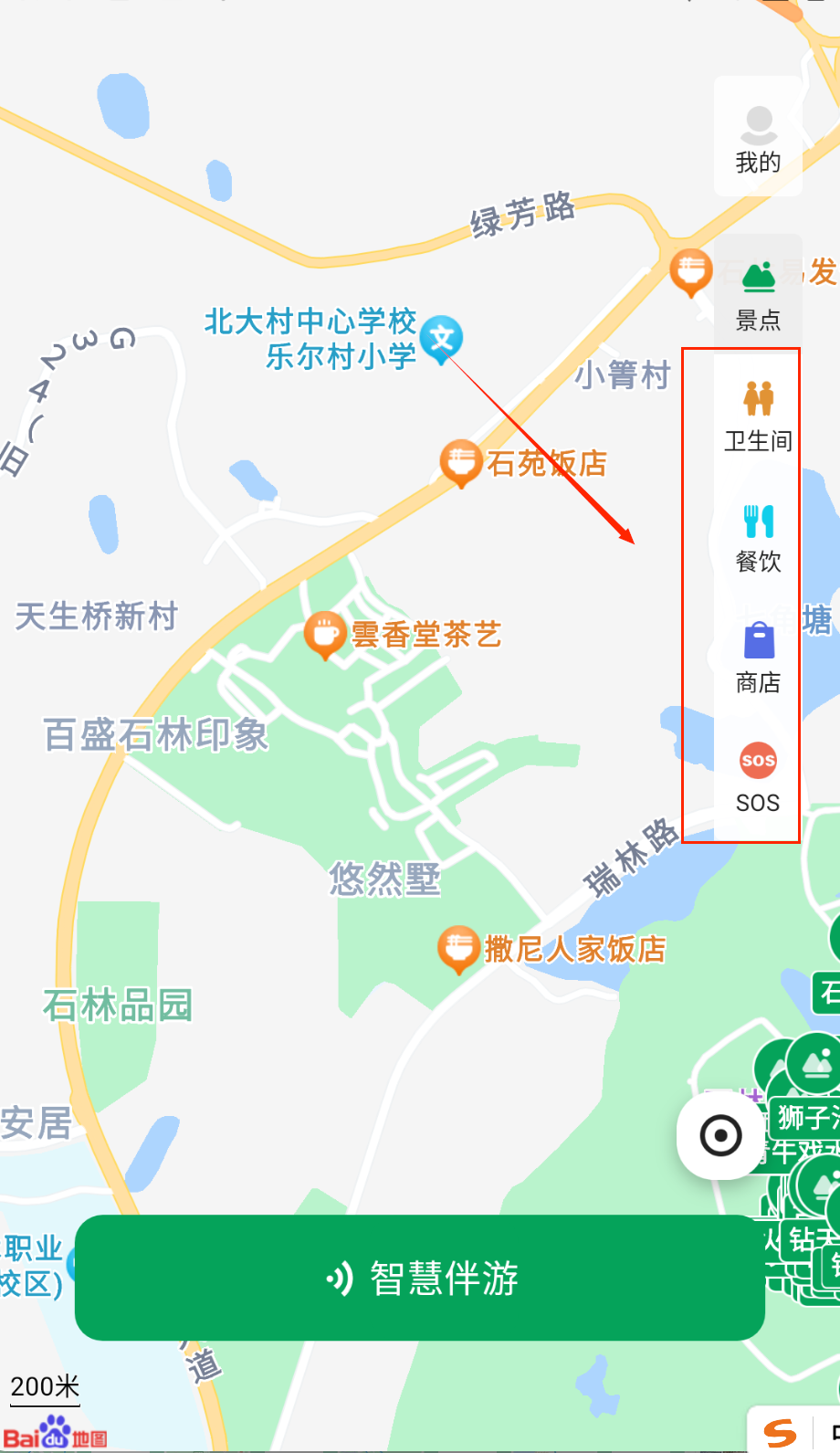 3、在服务管家界面查看景区内的餐饮、卫生间、停车场等设施位置。可设置提醒功能,在接近特定设施时收到通知。
