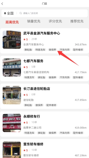 系统会自动定位并展示周边的合作汽修门店,用户能够依据评分、距离等条件筛选出合适的商家。