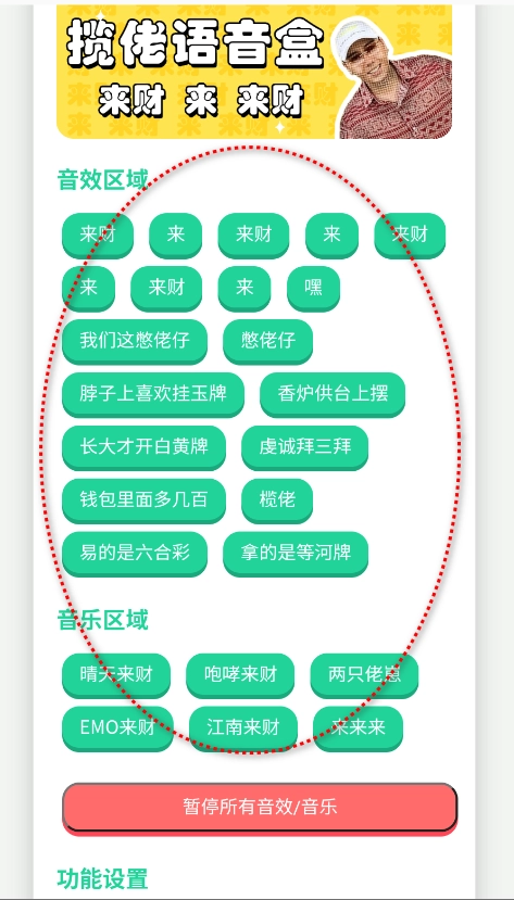 点击“暂停所有音效/音乐”按钮,即可暂停当前正在播放的音频。