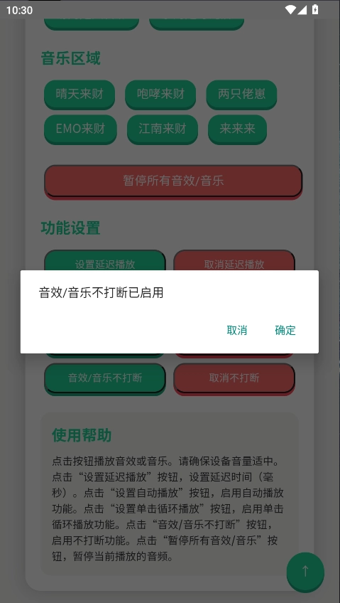 点击“音效/音乐不打断”按钮,即可开启该不打断功能。