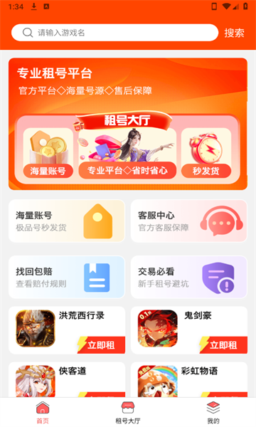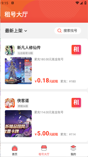 羊毛是一款全新的专业手机租号平台,平台上有超多热门游戏账号可供租赁,让大家能够尽情畅玩游戏。平台不仅价格优惠,而且所有账号都有安全保障,大家可以放心在软件中租号。此外,平台功能多样,有需要的话就快来体验吧!
