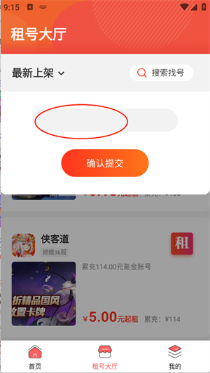点击租号大厅,这里对游戏账号进行了详细的分类。