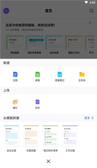 4、飞书文档为用户们提供了多种实用的模板素材,点击想要的样式,即可马上记录编辑文档资源;
