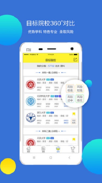 志愿智能推荐功能:只需输入高考分数(或估分、模考成绩)、所在省份以及文理科类别,就能便捷获取涵盖不同风险等级的院校推荐清单。