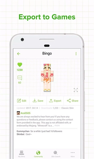 更多>今天为大家整理了一些手机版本的我的世界皮肤编辑器,适用于各个版本的我的世界游戏,可以更改游戏内人物的皮肤,内置了非常多的皮肤选项,选择自己喜欢的直接一键导入到游戏当中去使用,还支持自定义修改,打造属于自己独一无二的人物皮肤哦,有需求的朋友们快来下载试试看吧!