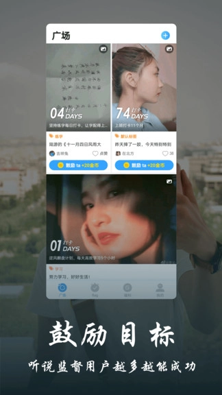 你可以发起一个目标或计划,其他用户能围观并鼓励你,这些鼓励能帮助你更顺利地完成目标。