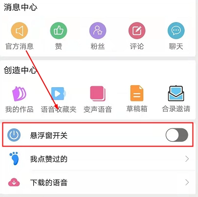 在萌我变声器的“我的”个人界面中,找到并点击“悬浮窗开关”选项。