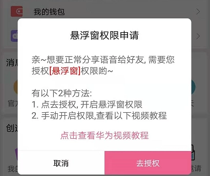 然后根据指导给软件授权悬浮窗权限即可