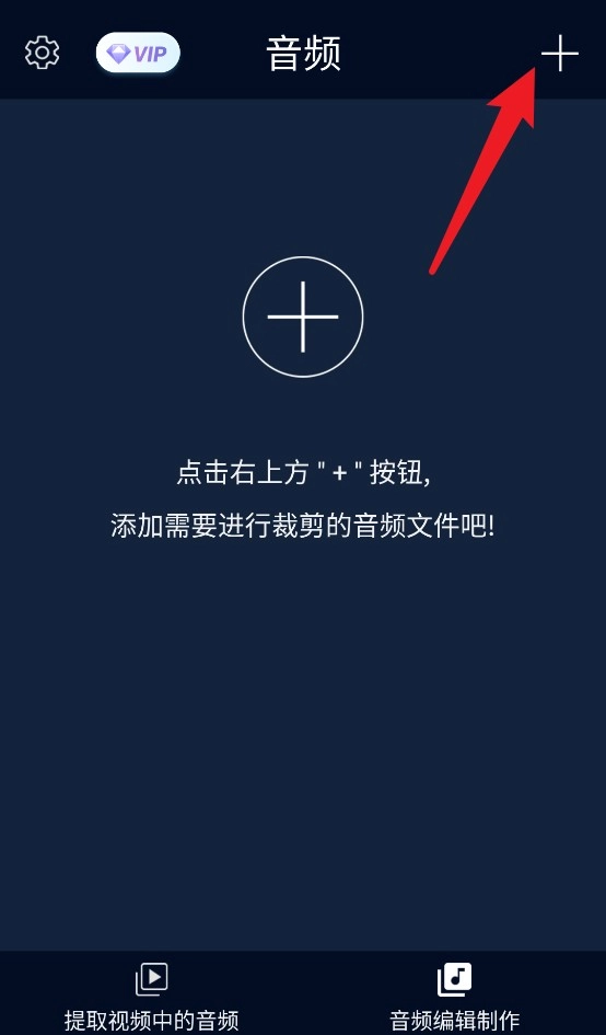 进入“音频”页面后,同样点击右上角的“+”号按钮,导入需要裁剪处理的音频文件,以便后续编辑。
