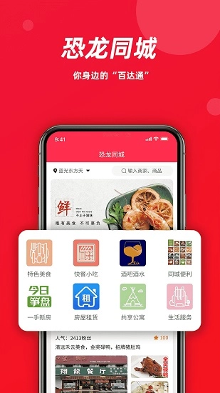 恐龙同城是一款超实用的生活服务平台,这里汇聚了海量同城服务资源,从美食探店、购物优惠到旅游攻略、交通出行,各类需求都能轻松满足,让你的生活更便捷高效,节省日常琐事的时间成本。无论是想找特色美食、休闲娱乐,还是生活必备服务,这里一应俱全,你想要的都能在这里找到,有需要的朋友赶紧来体验吧!