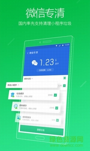 手机缓存清理软件是一款功能强大的手机缓存清理工具,能帮助用户快速清理手机里没用的垃圾,释放手机内存空间,还能协助用户管理手机内的文件和其他软件,有需要的用户欢迎前往绿色资源网获取!
