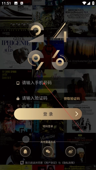 1、打开2496音乐,点击【请输入手机号】。