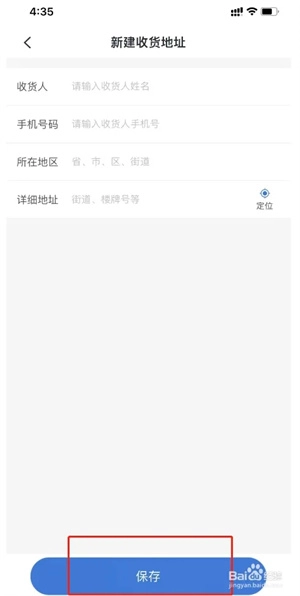 编辑地址信息,点击保存按钮完成地址新增。