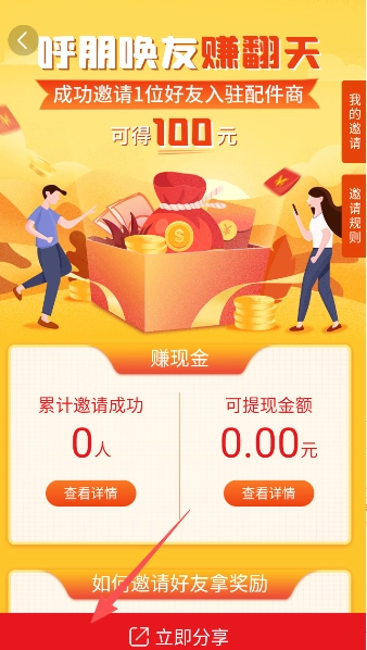 2、通过分享推广邀请其他新用户加入平台,可赚取奖励金并用于提现。