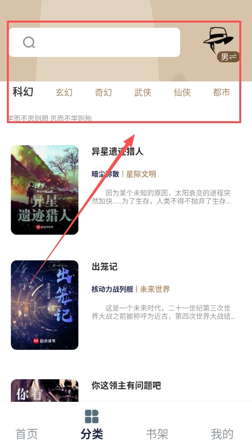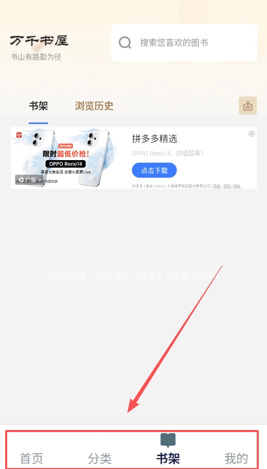 首先打开万千书屋,在底部导航栏点击“分类”按钮,就能看到科幻、玄幻、奇幻等各类图书的分类选项。