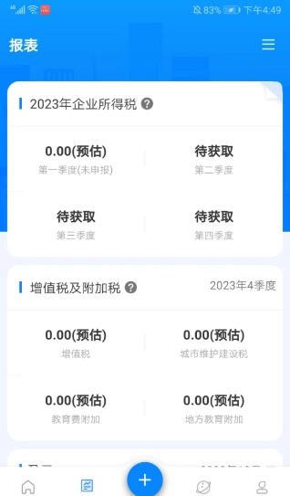4、进入报表界面后,能够查看当前企业各季度的所得税、增值税、附加税等不同税种的分类情况。