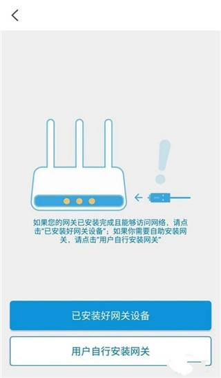 3、进入后点击图中所示的“已安装好网关设备”,绑定成功后返回首页。